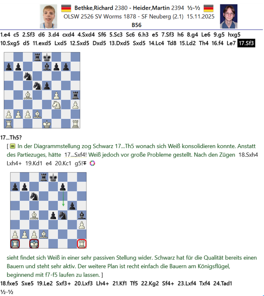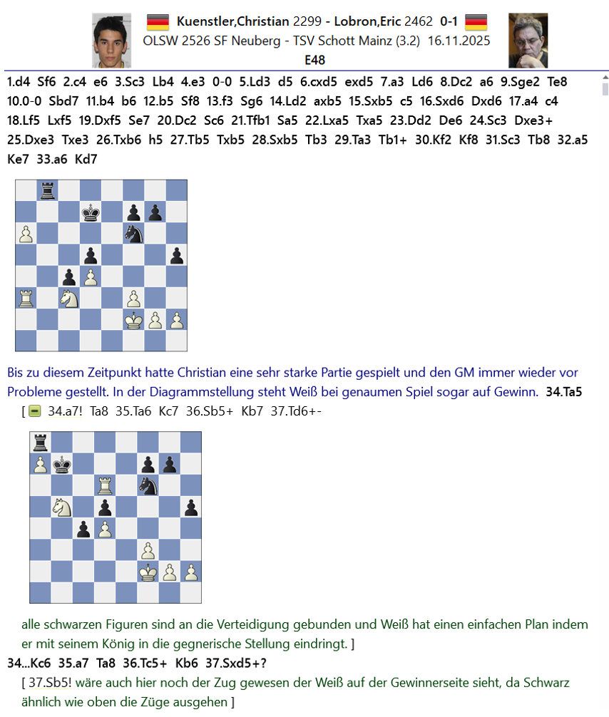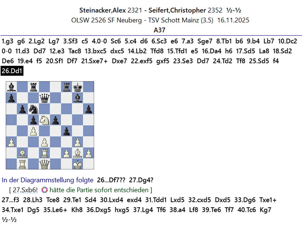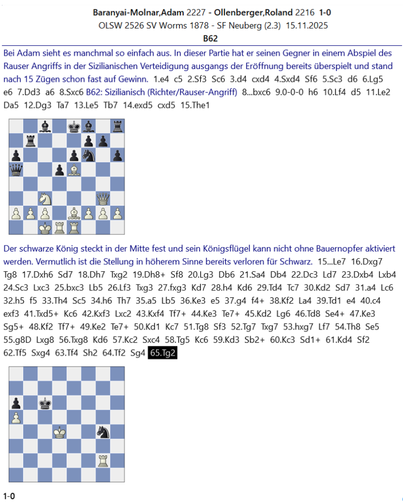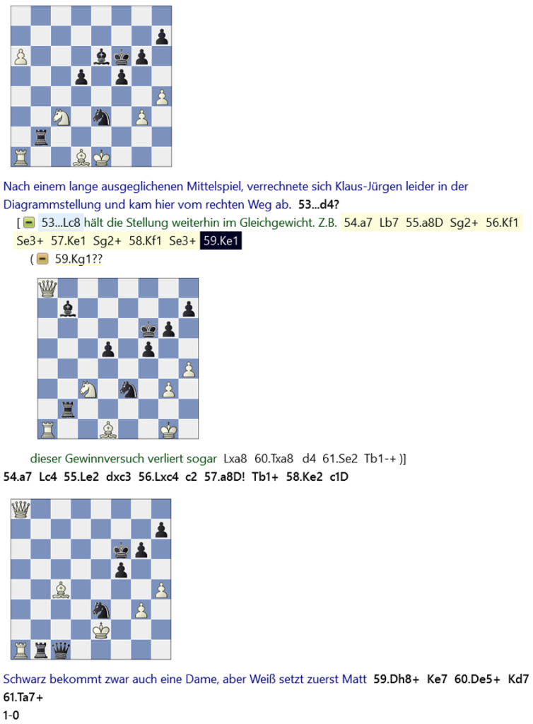 Nachfolgend noch ein paar interessante Partien und Stellungen aus den jeweiligen Mannschaftskämpfen.