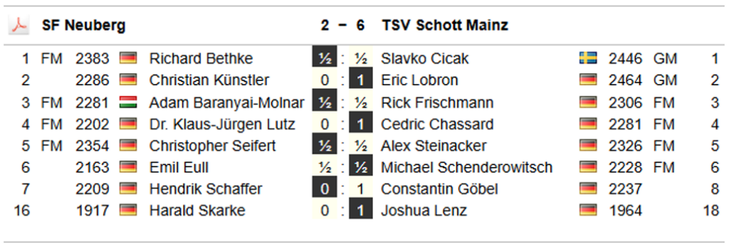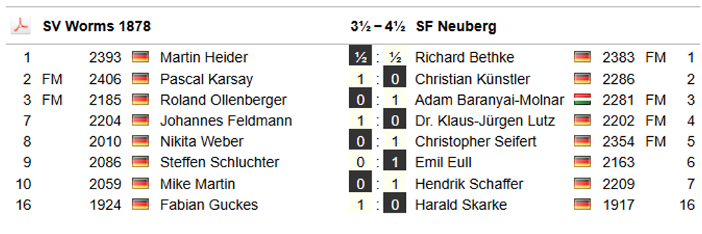 Neuberg 1: Oberliga Südwest Runde 2+3